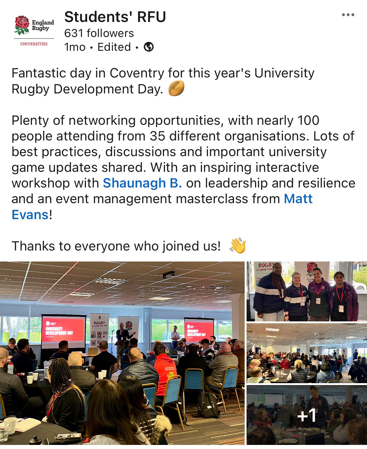 Left- Instagram Takeover covering the University Rugby Development Day at Coventry Rugby Club.